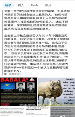 ▲脸书群组热议“全能神”邪教组织(原文英文,机翻中文)