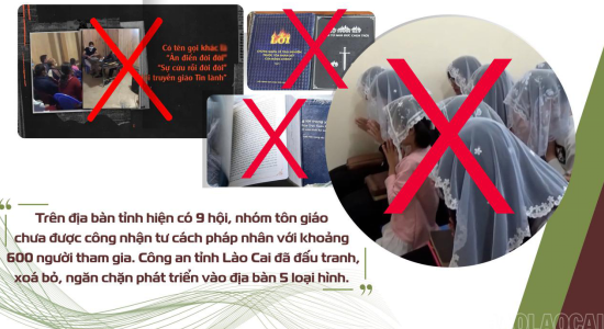 ▲据老街省公安厅统计,目前全省仍有9个非法教派组织活动,涉及约600人,已依法取缔5类邪教非法活动。图源:Baolaocai.vn