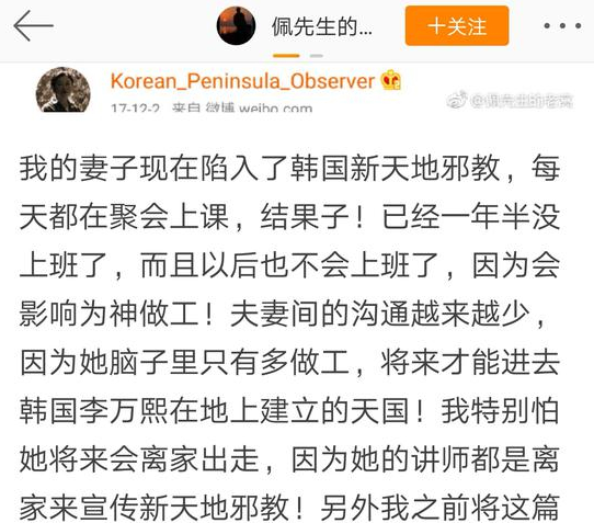 中国反邪教网讯(记者 厉洁)近期,不断有网友向中国反邪教网举报,反映韩国“新天地教会”打着基督教和公益组织旗号向国内渗透,神化头目李万熙,编造“肉体永生”等邪说,发展控制成员,尤其是高学历的青年人,收集公民个人信息,窃取国家秘密,聚敛钱财,危害社会。对此,本网进行了调查。