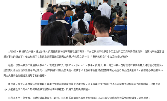 我国多地政府主管部门依法取缔“新天地教会”